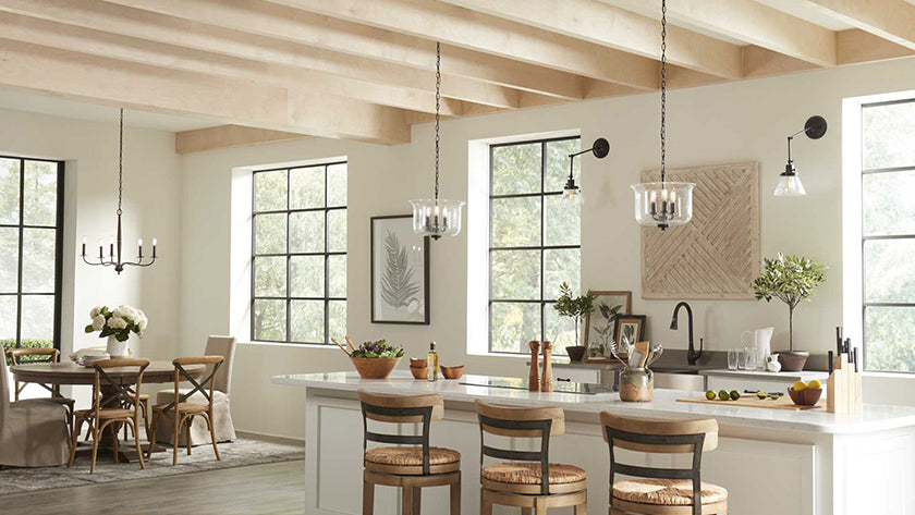 You can provide additional layers and levels of light by adding some separate lighting options to the kitchen. These could be undercabinet lights, wall lights if you have room, or mini pendants over a bar or counter.