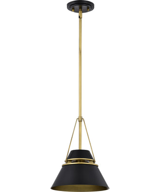 The Adina 1-Light Pendant in Matte Black by Nuvo Lighting is a stunning addition to any home or office space. Its sleek and modern design features a matte black finish that exudes sophistication and elegance. The pendant light is beautifully complemented by natural brass accents, creating a striking contrast that enhances its visual appeal. Crafted from high-quality steel, this pendant light is not only stylish but also durable and long-lasting.