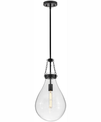 The Eloise 1-Light Small Pendant in Black by Hinkley is a stunning addition to any home or office space, exuding elegance and sophistication. This pendant light features a sleek black finish that complements its modern design. The teardrop-shaped glass shade adds a touch of elegance, making it a perfect fit for contemporary and transitional decor styles. The clear glass allows the light to shine through brilliantly, creating a warm and inviting atmosphere.