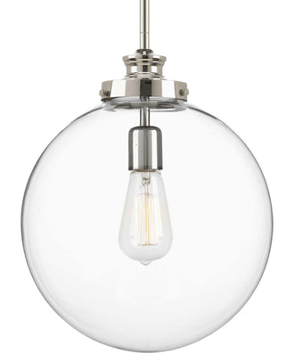 One-light large pendant with a modern take on vintage electric design with a clear glass sphere in a Polished Nickel finish.