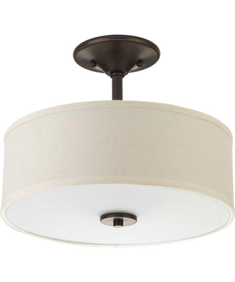 The Inspire 2-Light 13" Semi-Flush Antique Bronze fixture is a beautiful blend of traditional charm and modern elegance. Its design harks back to simpler times, yet it brings a fresh and contemporary feel to any space. The fixture features an antique bronze finish that exudes a warm, inviting glow, perfectly complementing the off-white linen shade. The etched glass diffuser adds a soft, sophisticated touch, ensuring a gentle distribution of light.