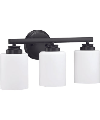 The Bolden 3-Light Bath Vanity Light in Flat Black is the epitome of modern elegance. Its bold, clean lines and gentle curves create a sophisticated look that enhances any bathroom décor. The flat black finish adds a touch of contemporary style, while the white frosted glass shades provide a soft, diffused light that is both functional and aesthetically pleasing.