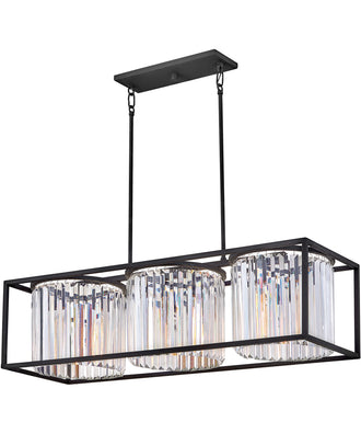 The Giada 3-Light Three Light Linear in Black by Hinkley is a stunning centerpiece that effortlessly combines contemporary design with timeless elegance. The sleek black finish provides a sophisticated touch, while the linear structure exudes modernity. The fixture features three lights, each encased in a cylindrical crystal shade that adds a touch of glamour and luxury to any space.