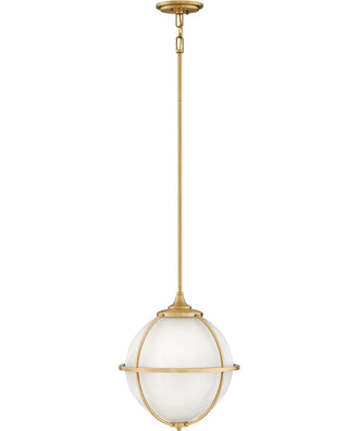 The Odeon 3-Light Medium Orb Pendant in Satin Brass by Hinkley is a stunning addition to any home or office space. This pendant light features a beautifully crafted orb shape, exuding a sense of modern elegance and sophistication. The satin brass finish adds a touch of luxury and warmth, making it a versatile piece that can complement various interior styles, from contemporary to classic.