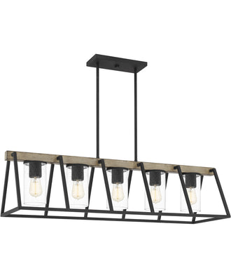 The Brockton 5-light Island Light in Grey Ash is a stunning blend of contemporary design and rustic charm. This island light features a sleek, rectangular frame constructed from durable steel with a sophisticated Grey Ash finish that adds a touch of modern elegance to any space. The five clear seeded glass shades house Edison-style bulbs, creating a warm, inviting glow that enhances the ambiance of your room.