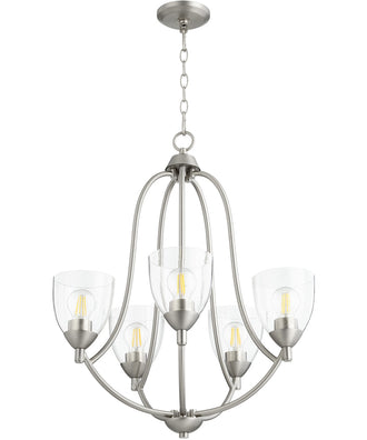 Picture this 5-light Chandelier in your home or office. Refresh your room with this Satin Nickel w/ Clear/Seeded-finished Chandelier by Quorum.