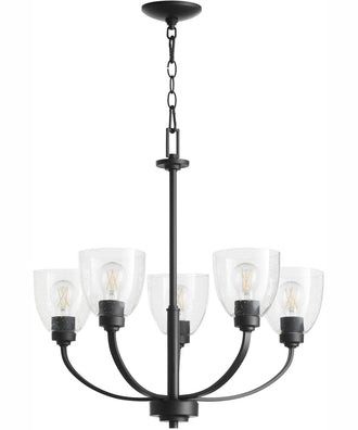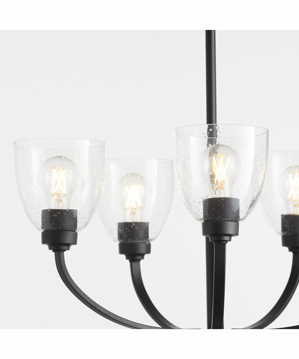 Installing the Reyes 5-light Chandelier is straightforward, thanks to its user-friendly design. The chandelier comes with all necessary hardware and instructions, making the installation process hassle-free. Once installed, maintaining the chandelier is simple. The clear seeded glass shades can be easily cleaned to keep them looking their best, and the textured black finish requires minimal upkeep to maintain its pristine appearance.