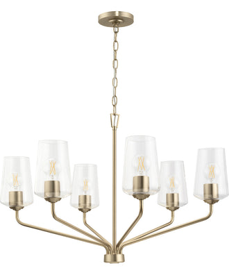 6-light chandelier can be installed in living rooms, dining rooms and bedroomsSoftly curved design is an ideal addition to New Traditional and Transitional settingsIts elegant frame is finished in rich Champagne BronzeSix perfectly proportioned clear glass shades deliver bright light to the surrounding spaceSleek, clean elements and understated detailing make this chandelier an ideal addition to updated traditional environmentsMeasures 32 in. D x 21 in. HUses (6) 60-Watt max medium base bulbs, or LED equivalent, that are sold separately. Dimmable when used in conjunction with dimmable bulbsDry location listed, for indoor use onlyOur 1-Year Limited Warranty guarantees your complete satisfaction with your purchase and includes professional after-sales customer service supportIncludes installation instructions and mounting hardware for a quick, easy installationProgress Lighting products are designed for exceptional quality, reliability, and functionality