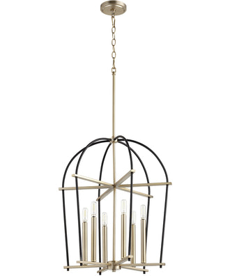 Picture this 6-light Entry Foyer Hall Chandelier in your home or office. Refresh your room with this Noir w/ Aged Brass-finished Entry Foyer Hall Chandelier by Quorum.