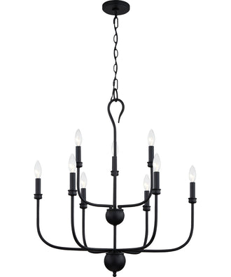The Blanche 9-light Chandelier in Matte Black is a stunning centerpiece that effortlessly combines elegance with timeless style. Its minimalist design features simple lines and a traditional matte black finish, making it a versatile addition to any home decor. The chandelier's airy, open-frame design adds a touch of sophistication and allows it to blend seamlessly with various interior themes, from modern to classic.
