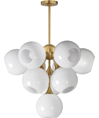 The Neve 10-Light Pendant seamlessly fits into various room themes and styles. Its timeless elegance makes it suitable for traditional, contemporary, and modern interiors. The natural aged brass finish adds a touch of vintage charm, while the marble glass shades bring a modern twist. This versatile design allows it to complement a range of color palettes and décor styles, from classic and minimalist to eclectic and luxurious.