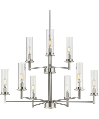 Progress lighting Kellwyn 9-Light Clear Glass Transitional Style Chandelier Light Brushed Nickel