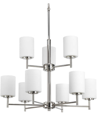 Progress lighting Replay 9-Light Etched Painted White Glass Modern Chandelier Light Polished Nickel