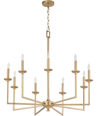 Picture this 9-light Chandelier in your home or office. Refresh your room with this Aged Brass -finished Chandelier by Quorum.