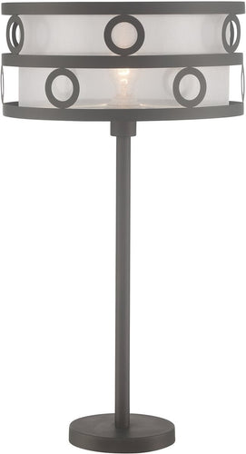 Recap: The 30"H Lavinia 1-light Table Lamp features a burnished bronze finish and an inner fabric shade, standing at 29.5 inches in height. It includes a 23-watt E27 CFL bulb and an on/off in-cord switch. Ideal for living rooms, bedrooms, home offices, and more, this lamp complements various decor styles and enhances any room's ambiance. Order now to add a touch of elegance and functionality to your space.