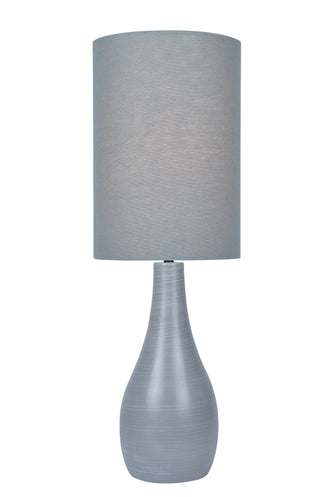 The 31" Quatro 1-light Table Lamp in Brushed Grey is a sophisticated addition to any home or office. Its sleek, modern design features a gently curved base that exudes elegance and style. The brushed grey finish adds a touch of contemporary chic, making it a versatile piece that can seamlessly blend into various interior decor themes. The lamp's cylindrical shade complements the base perfectly, creating a cohesive look that is both stylish and functional.