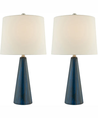 Introducing the Pillan 1-Light 2 Pack-Table Lamp by Lite Source, a perfect blend of contemporary design and timeless elegance. These table lamps feature a sleek, conical ceramic base finished in a captivating blue ceramichrome, adding a touch of sophistication to any room. The white linen shade complements the base beautifully, providing a soft, diffused light that creates a warm and inviting atmosphere.