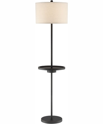 Tungsten 1-Light Floor Lamp With Tray Dark Brz/Linen Shade