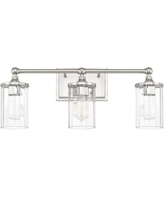 Enhance your bathroom with the Camden 3-Light Vanity in Polished Nickel with Clear Beveled Glass. With its elegant design, versatile functionality, and high-quality construction, this fixture is sure to impress. Don't miss out on the opportunity to elevate your space with this beautiful and practical lighting solution. Order now and transform your bathroom into a stylish and well-lit sanctuary.