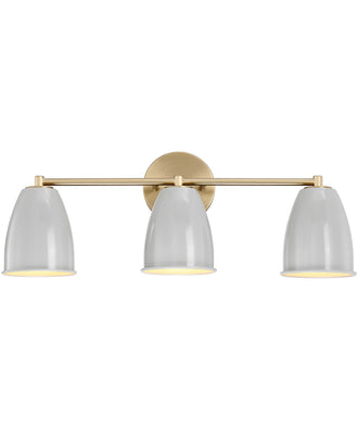 • Modern vanity in Brushed Gold with Grey Sky metal shades
