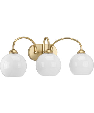 Progress lighting Carisa 3-Light Opal Glass Mid-Century Modern Bath Vanity Light Vintage Gold