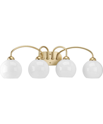 Progress lighting Carisa 4-Light Opal Glass Mid-Century Modern Bath Vanity Light Vintage Gold