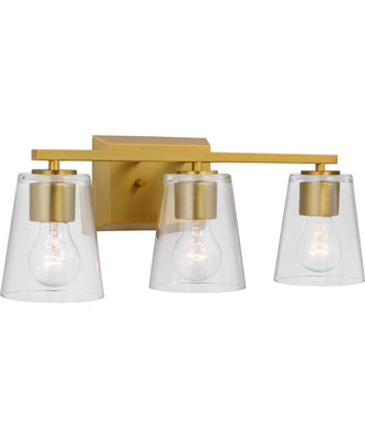 Vertex 3-Light Clear Glass Contemporary Bath Light Brushed Gold