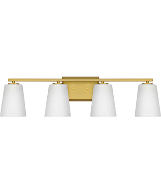 Vertex 4-Light Etched White Glass Contemporary Bath Light Brushed Gold