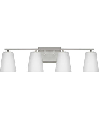 Vertex 4-Light Etched White Glass Contemporary Bath Light Brushed Nickel