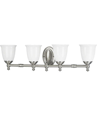 Progress lighting Victorian 4-Light White Opal Glass Farmhouse Bath Vanity Light Brushed Nickel