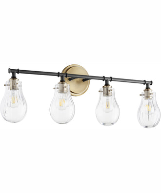 Picture this 4-light Bath Vanity Light in your home or office. Refresh your room with this Textured Black w/ Aged Brass-finished Bath Vanity Light by Quorum.