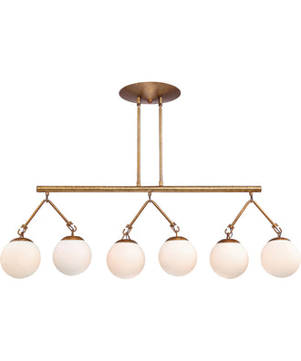 Enhance your home with the stylish intensity of the Orion 6-Light Island Pendant in Patina Aged Brass. Its unique design, high-quality materials, and versatile functionality make it a must-have for any discerning homeowner. Order now to transform your space with this exquisite lighting fixture.