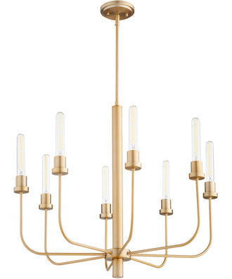 Picture this 8-light Chandelier in your home or office. Refresh your room with this Aged Brass -finished Chandelier by Quorum.