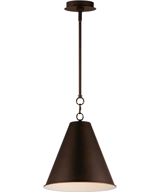 The Veritas 12-inch 1-Light Pendant in Chestnut Bronze is a stunning addition to any home, offering a perfect blend of elegance and functionality. The iconic metal spun cone shade provides a transitional design that complements various interior styles. The rich Chestnut Bronze finish adds a touch of sophistication, while the white-painted interior enhances luminosity and ensures even light distribution.
