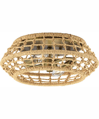 Laila 12-1/4 in. 2-Light Coastal Flush Mount with Woven Jute Accents Vintage Brass