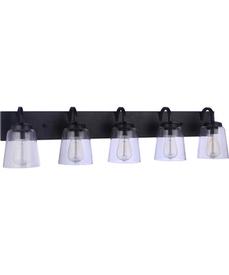 With a bold wide backplate, arched arms and tapered clear glass shades, the Elsa Vanity Collection offered in two finishes from a sconce up to a five light, delivers excellent illumination and a classic aesthetic that blends with any style.