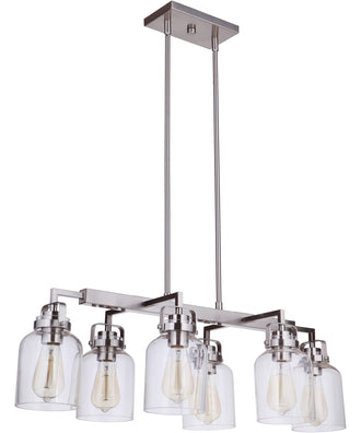The Foxwood 6-Light Island Pendant in Brushed Polished Nickel is a stunning addition to any home. Its clean lines and clear glass shades provide a subtle nod to industrial design, making it an ideal choice for both transitional and traditional settings. The brushed polished nickel finish adds a touch of sophistication and elegance, while the bell-shaped glass shades offer a timeless appeal. This pendant light fixture is designed to be a focal point in any room, providing both style and functionality.