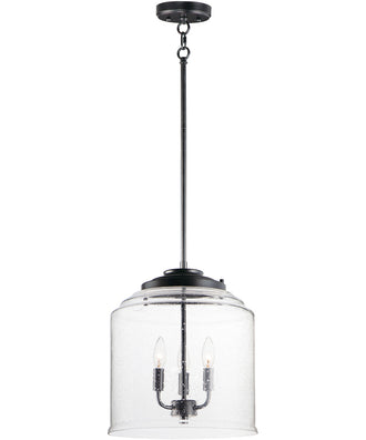 The 14"W Acadia 3-Light Pendant in Black is a masterful blend of simplicity and elegance, designed to enhance any living space with its sophisticated charm. The clean and simple frame features gracefully bending arms that support the Clear Seedy glass shade, creating a timeless look that complements both traditional and transitional decor styles. The black finish adds a touch of classic sophistication, making it a versatile piece that can seamlessly integrate into various room themes.