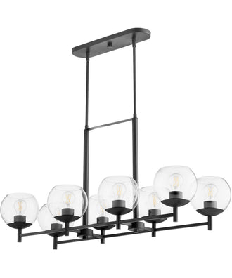 This chandelier boasts eight lights, each capable of holding a 60-watt medium-base bulb (not included), providing ample illumination for any space. The clear glass shades not only protect the bulbs but also diffuse the light beautifully, creating a warm and inviting ambiance. Measuring 21 inches in height, 41.75 inches in width, and 16 inches in depth, this chandelier is substantial enough to make a statement without overwhelming the room.