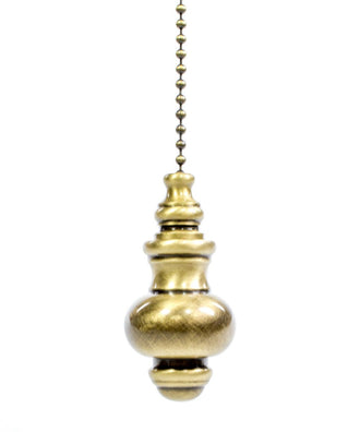 A new ceiling fan pull is the perfect way to complete your new or favorite fan. This quality hardware accent is sure to dress up your tired fan. Polished brass beaded metal ball chain snaps into your existing chain connector on your fan. 95% of all lamp ceiling fans will fit this pull chain. Chain measures 12" length (and can be cut shorter), 1.75" height and 1.2" width. Material: Antiqued Brass finish with Antiqued Metal Chain.