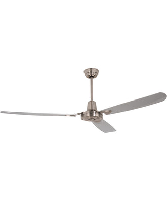 The aerodynamic Velocity ceiling fan is part retro, part modern, part Industrial/Loft and totally cool. The cutting-edge 3-blade design performs brilliantly with the heavy-duty 4-speed motor, which includes a 4-speed wall control. Finished in three appealing options Flat Black with custom Flat Black blades, White with custom White blades, or Brushed Polished Nickel with Brushed Nickel Blades.