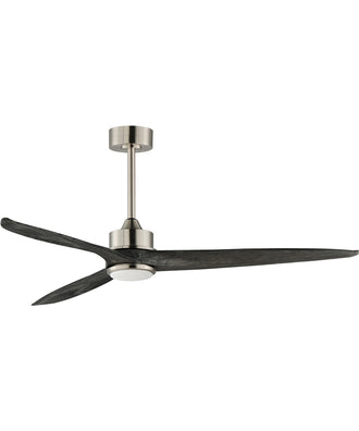 Solid Wood blades curve as they rotate around a center housing with LED light kit included. An additional cover plate is included if the light kit is not used. Select from stylish finish combinations including Natural Aged Brass with White Wood, Satin Nickel with Greywood, Black with Walnut wood, or Charcoal Bronze with Distressed Wood.