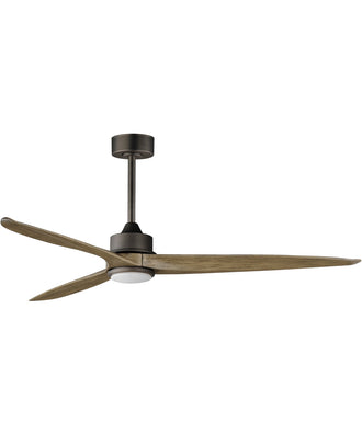 Solid Wood blades curve as they rotate around a center housing with LED light kit included. An additional cover plate is included if the light kit is not used. Select from stylish finish combinations including Natural Aged Brass with White Wood, Satin Nickel with Greywood, Black with Walnut wood, or Charcoal Bronze with Distressed Wood.