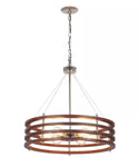 Catalina lighting Catalina 24"W 6-Light Polished Nickel Drum Modern Pendant Mahogany Wood Finish Shade