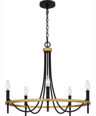 Dinner parties ahead. The Legare chandelier or island light invites conversation and ambience beneath its curved lines and classic matte black finish. Soft gold accents add tasteful luminosity and luster.