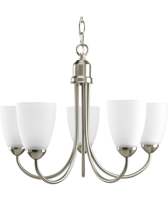 Progress lighting Gather 5-Light Etched Glass Traditional Chandelier Light Brushed Nickel