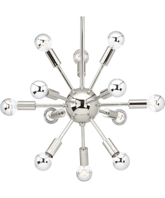 Progress lighting Ion 12-Light Mid-Century Modern Chandelier Light Polished Nickel