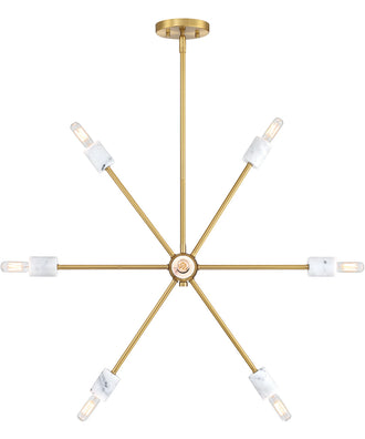The Star Dust 8 Light Chandelier in Brushed Gold is a stunning centerpiece that combines modern aesthetics with timeless elegance. Featuring a sleek brushed gold finish, this chandelier exudes a luxurious charm that enhances any interior space. The natural marble details add a touch of sophistication, making it an exquisite addition to your home decor.