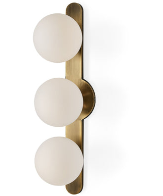 The Droplet Mid-Century 3 Light Sconce is designed with a warm antique brass finish that exudes timeless elegance. The sconce features three matte white opal globes, each with a diameter of 5.375 inches, which provide a soft and inviting glow. The combination of brass and opal glass creates a stunning visual contrast, enhancing the overall appeal of the sconce.
