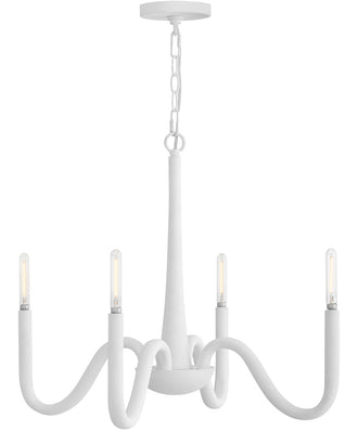 The Maris 4-Light Medium Chandelier in Textured Plaster is a breath of coastal freshness that effortlessly complements any living or dining space. The chandelier features exaggerated, curved arms with exposed candelabra lamps radiating from its center, evoking a formal and sophisticated silhouette. The white textured plaster finish imparts a chic, Californian feel, making it a perfect addition to modern and contemporary interiors.
